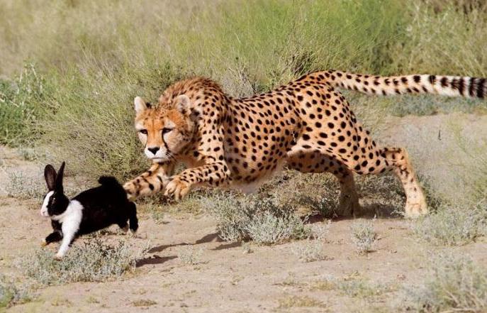 Убегать от столь быстрого охотника вынуждены газели, зайцы, кролики. Прежде чем напасть, гепард подкрадывается на расстояние примерно 25 – 27 метров. В среднем погоня длится 15 – 20 секунд. Менее половины охот гепардов завершаются успешно, потому что животное быстро устает, не способно с большой скоростью преодолевать длительные расстояния.