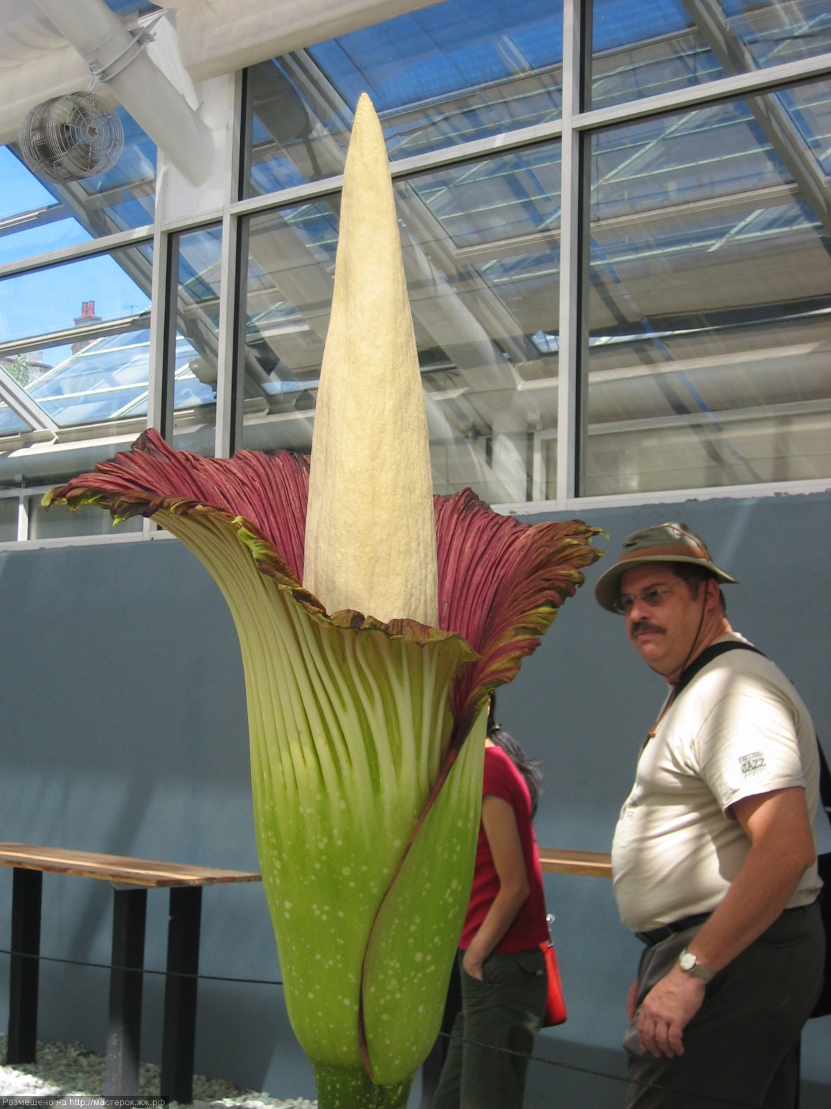 Чемпионом среди цветов по высоте является аморфофаллус титанический (в переводе — «гигантский бесформенный фаллос»), также известный как «трупный цветок», «змеиная пальма», «лилия вуду». Родом он с острова Суматра, но встречается и в других частях Южной и Юго-Восточной Азии. Соцветие этого растения достигает 2,5 м в высоту и 1,5 м в ширину. Самый большой из обнаруженных в естественных условиях цветков аморфофаллуса достигал 3,3 метра в высоту и весил 75 килограммов.