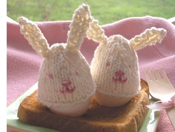 Можно связать для праздничного яйца чехольчик или шапочку.