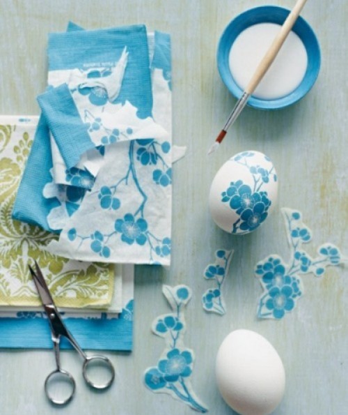 Можно также применить декупаж пасхальных яиц. Декупаж – это популярная hand-made-техника. Заключается она в том, что бумажные салфетки или специальные декупажные карты наклеиваются на самые разные поверхности – от дерева до стекла.
