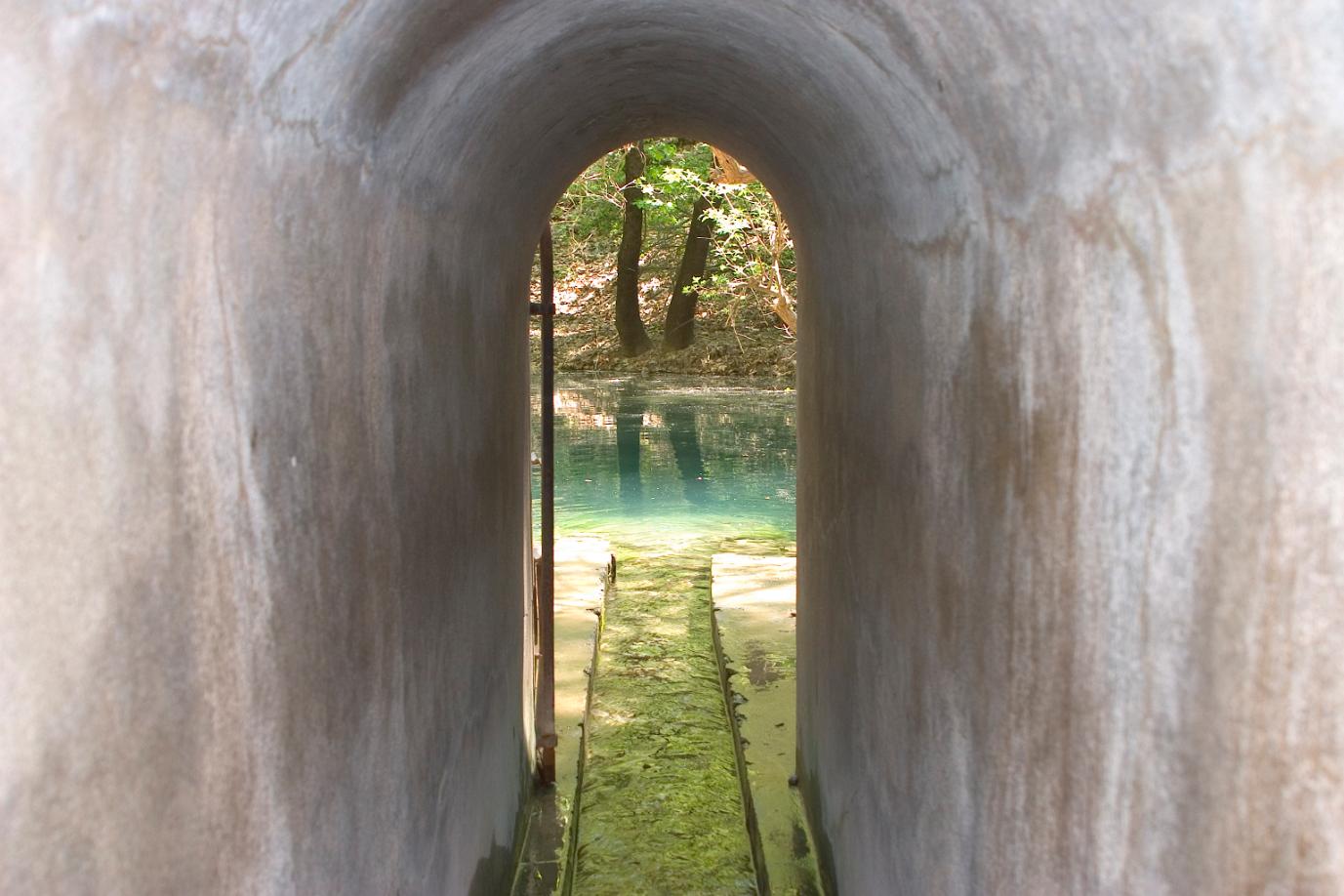Еще одна из интересных экскурсий – поездка на Семь источников. Семь источников представляет собой мощный родник, выходящий на поверхность в семи рядом расположенных местах. Поток воды из родника впадает в реку Лутанис, которая затем попадает в бетонный туннель, построенный итальянцами в 1930-х гг. специально для сбора воды и направления ее в искусственное озеро. Озеро используется как небольшое водохранилище для орошения района Колимбия, и является единственным на Родосе водоемом с пресной водой. По приданию считается, что тот, кто пройдет все семь источников смоет с себя семь смертных грехов. И еще те, кто пройдут сквозь тоннель помолодеют на семь лет. Я, конечно же, решила скинуть с себя груз лишних лет и осмелилась на этот шаг. Вначале я попала в узкий тоннель длиной примерно 200 метров, он не освещается. Вода в этом тоннеле по щиколотку, а в некоторых местах по колено, она довольно холодная.